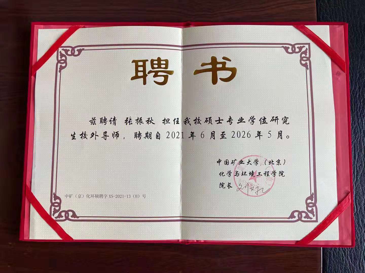 公司張振秋董事長被中國礦業(yè)大學(xué)(北京)聘任為碩士研究生校外導(dǎo)師。